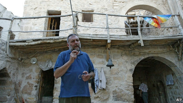 Father Paolo has been in the news ever since his arrival and the Syrian authorities hoped to remove him from the country more than a year ago. His latest confrontation with the authorities came after the Shabiha killed the young filmmaker Bassel Shahade in Homs last May who was a young Fulbright scholar from Syracuse University documenting the revolution. When his friends came to his memorial service at St. Cyril's Melkite Greek Catholic Church, the government "thugs dragged some mourners off to jail and chased away the rest, according to activists," as cited by the New York Times. The leadership of the Church did nothing to allow the service to continue. On the other hand, Father Paolo invited Mr. Shahade’s friends to pray at Deir Mar Musa, which is about a half hour drive from Damascus, and which had become his main headquarters. “Nobody was allowing them to pray for their lost friend,” he told the New York Times, even though both Muslims and Christians attended the service.